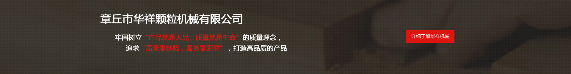 公司成立于1997年,前身為章丘市華祥機(jī)械廠(主營:顆粒機(jī),飼料顆粒機(jī),有機(jī)肥造粒機(jī),有機(jī)肥設(shè)備,木屑顆粒機(jī),顆粒生產(chǎn)線等), 公司是集機(jī)械制造,成套設(shè)備設(shè)計(jì),安裝于一體的現(xiàn)代企業(yè),由鑄造、機(jī)械加工、合成組裝、設(shè)計(jì)開發(fā)、網(wǎng)絡(luò)營銷五個(gè)聯(lián)合單位構(gòu)成。主要生產(chǎn)飼料加工機(jī)械,生物質(zhì)燃料機(jī)械,有機(jī)肥生產(chǎn)設(shè)備三大系列產(chǎn)品。 華祥機(jī)械牢固樹立“產(chǎn)品就是人品,質(zhì)量就是生命”的質(zhì)量理念,追求“質(zhì)量零缺陷,服務(wù)零距離”,打造高品質(zhì)的產(chǎn)品。 精心的設(shè)計(jì)、精湛的制造、精細(xì)的施工、全方位的服務(wù),以及華祥人長(zhǎng)期秉持“讓我們共同前進(jìn)”的理念,使華祥贏得了良好的社會(huì)信譽(yù),產(chǎn)品遠(yuǎn)銷意大利、越南、緬甸、澳大利亞等全球多個(gè)國家和地區(qū),產(chǎn)品質(zhì)量和信譽(yù)得到了廣大用戶的認(rèn)可。 未來,華祥人將繼續(xù)大力發(fā)揚(yáng)"誠信、創(chuàng)新、協(xié)作、效率"的企業(yè)精神,堅(jiān)持技術(shù)、產(chǎn)品、管理、服務(wù)創(chuàng)新,大力推進(jìn)產(chǎn)品精品化和市場(chǎng)國際化,全力打造“華祥”機(jī)械品牌形象。想客戶所想,為客戶創(chuàng)造價(jià)值,協(xié)助客戶的事業(yè)獲得成功;"華祥"人充滿信心,滿懷希望,真誠期待與您共贏。